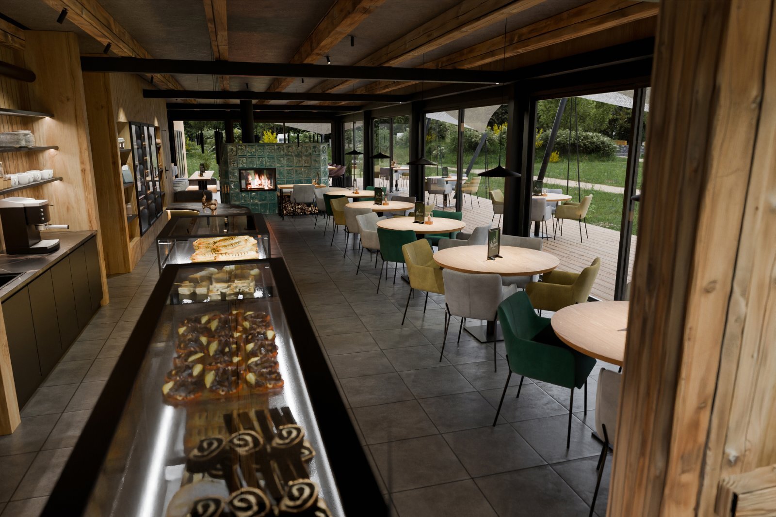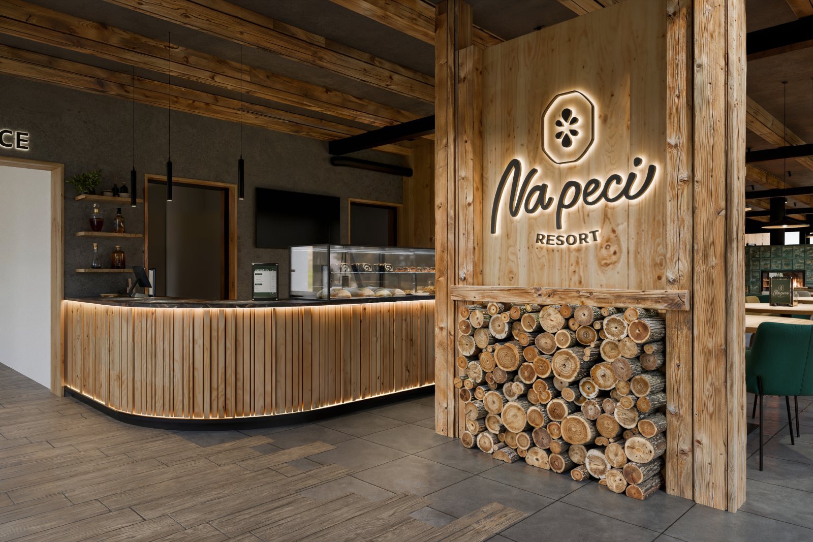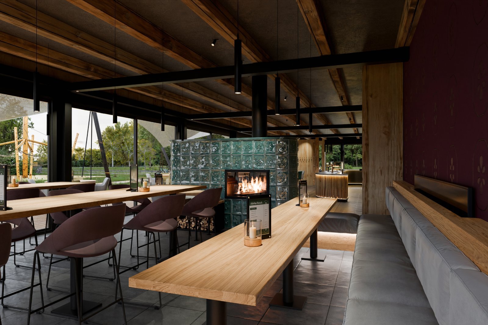 3D vizualizace k projektu bistra, které bude součástí resortu v Nové