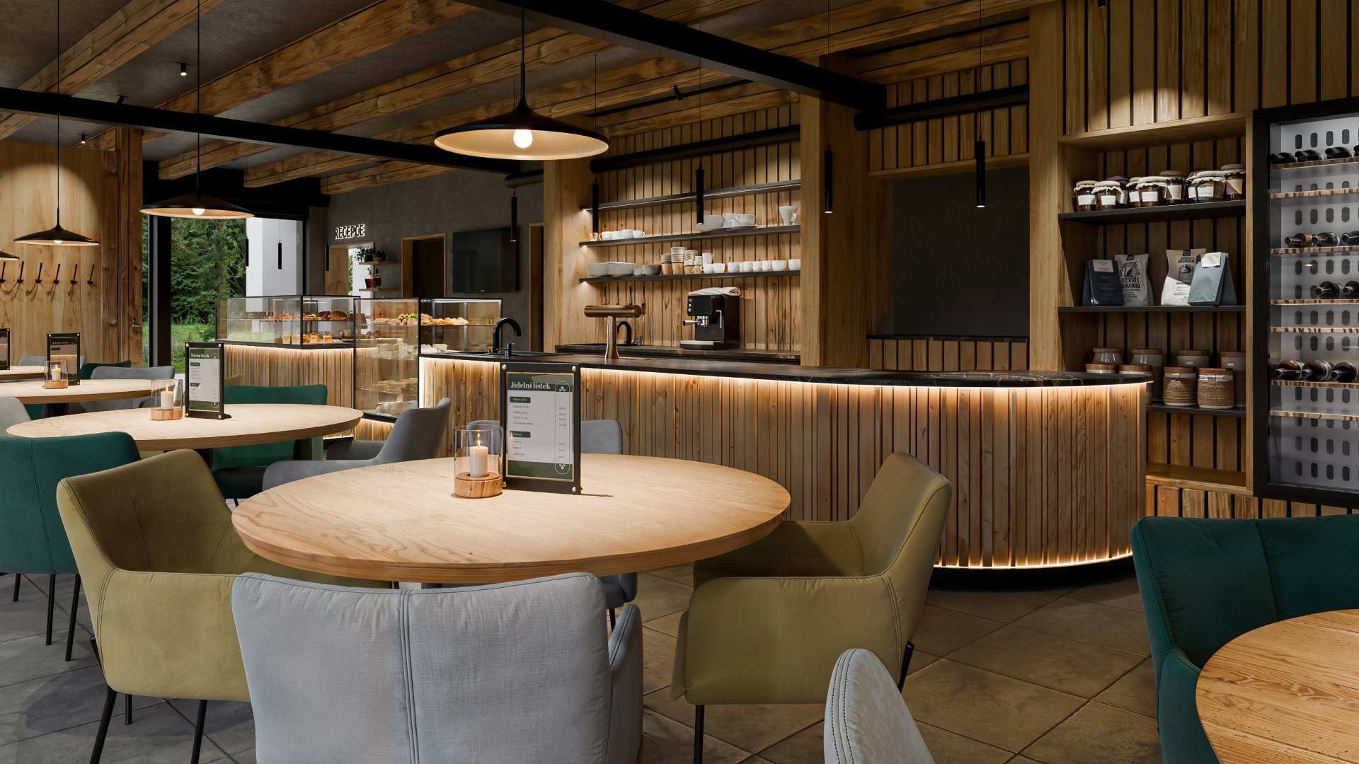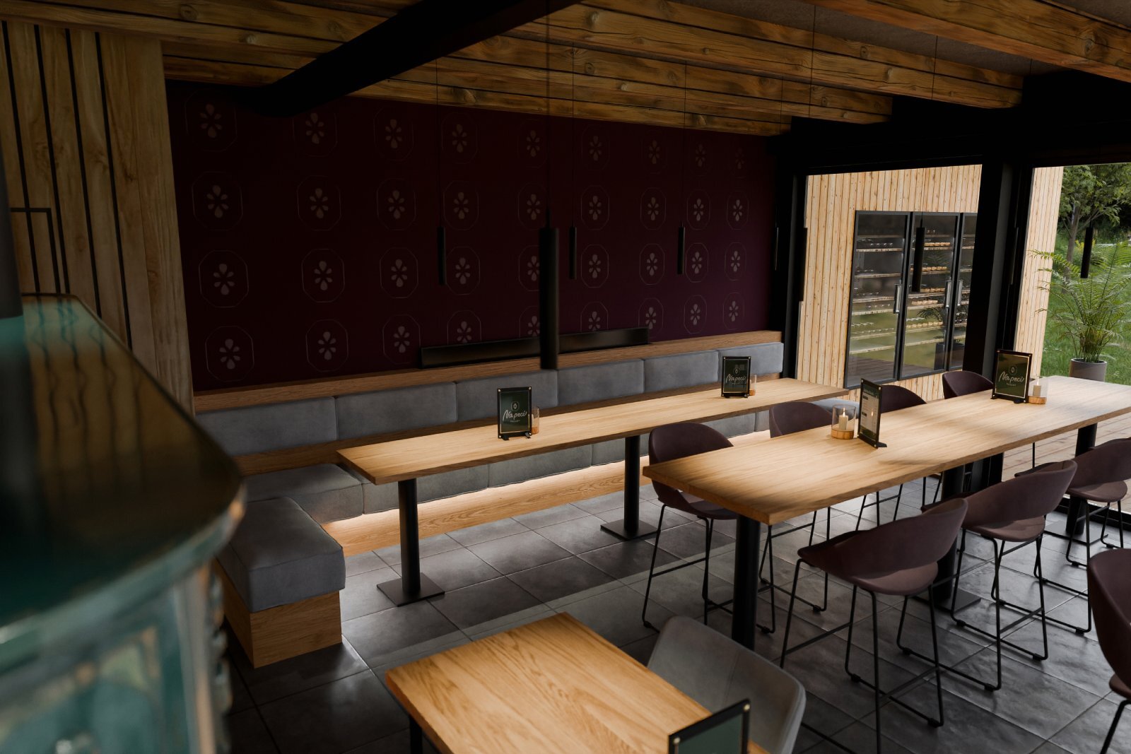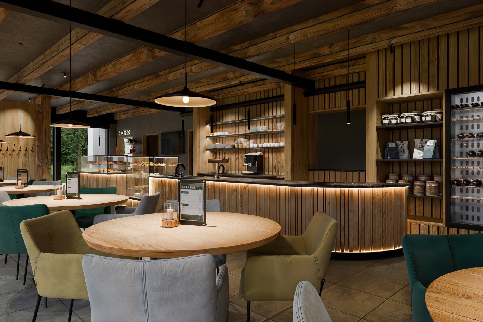 3D vizualizace k projektu bistra, které bude součástí resortu v Nové
