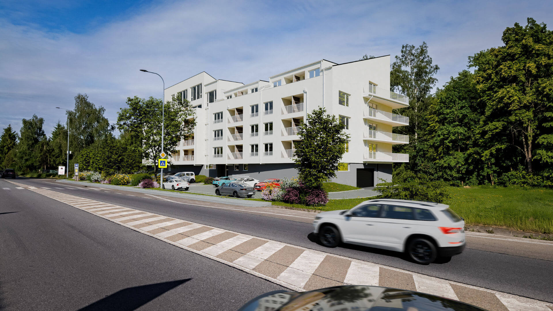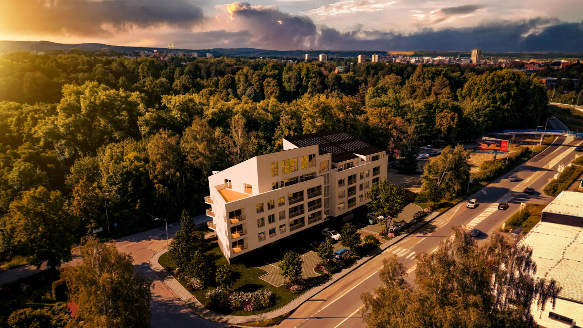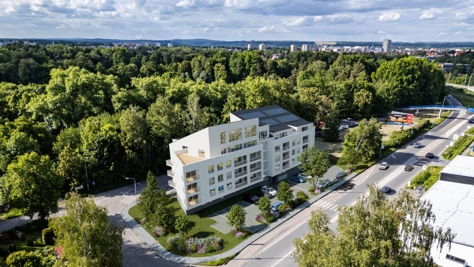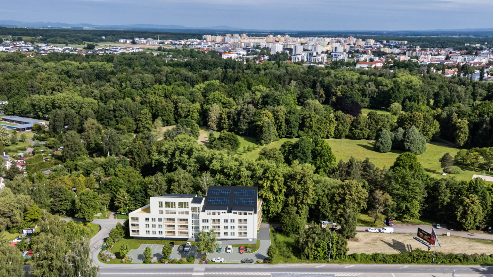 Rezidenční projekt Bydlení U Stromovky nabízí 47 bytových jednotek v atraktivní lokalitě Stromovka v Českých Budějovicích. Přestože výstavba zatím není dokončena, naše vizualizace realisticky ukazují budoucí podobu projektu díky zasazení do reálných leteckých snímků z dronu.