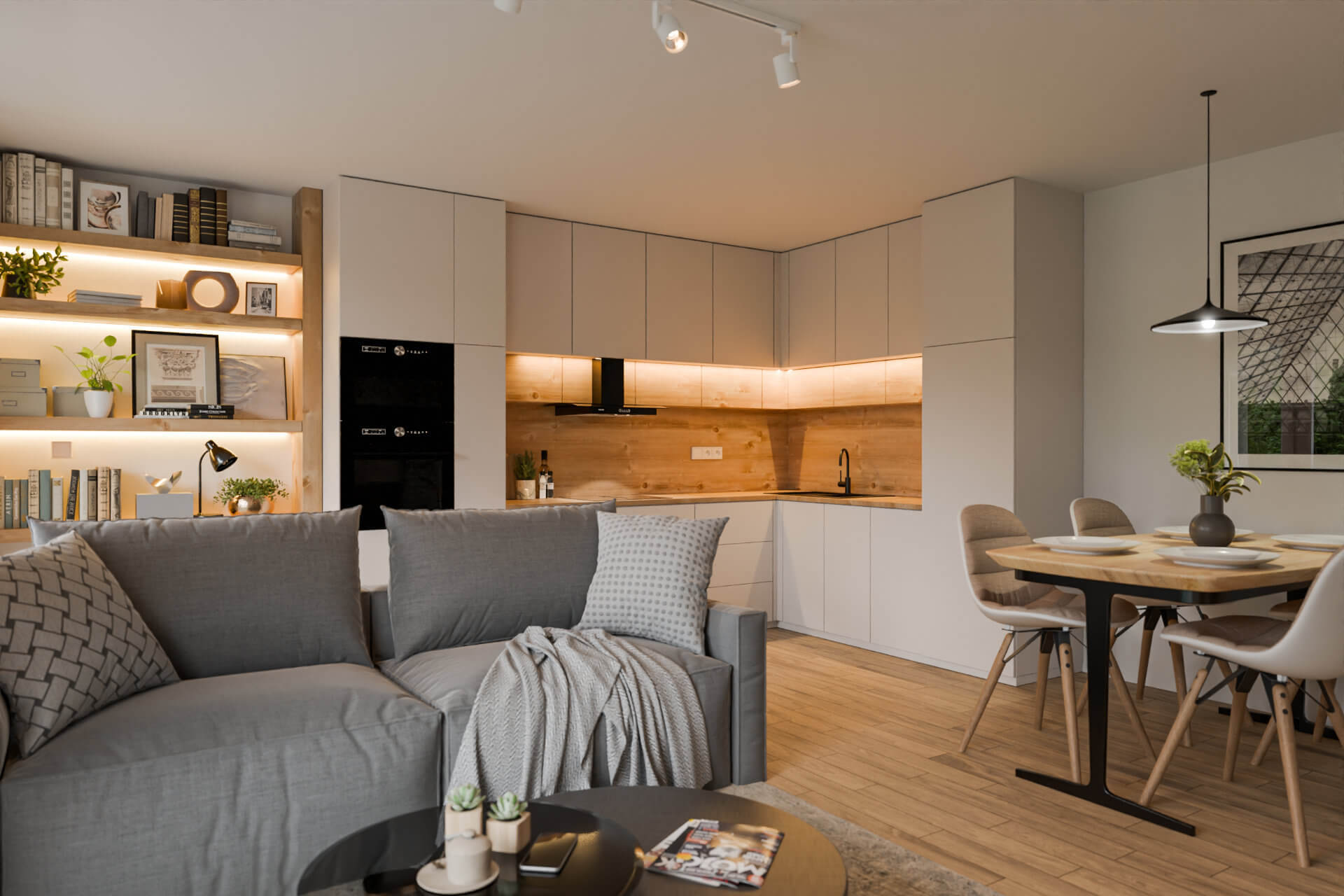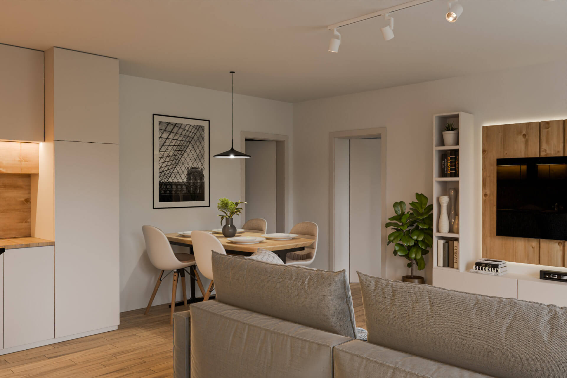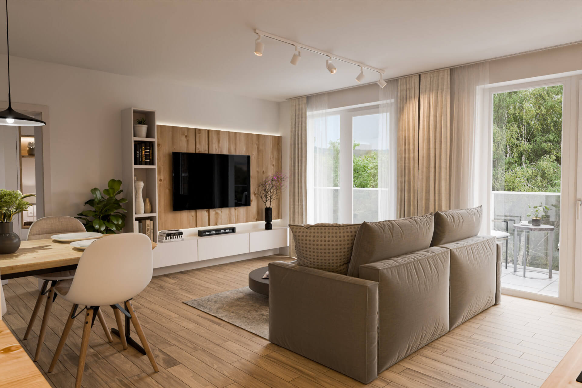 Pro klienta jsme dodali kompletní balíček: webové stránky s interaktivním 3D modelem, 3D vizualizace exteriérů, vizualizace bytu 2+kk a loftového bytu, dále 3D půdorysy a PDF karty jednotlivých bytů. Z připravených vizualizací jsme vytvořili také video-podklady pro tvorbu reels na sociální sítě makléřek.