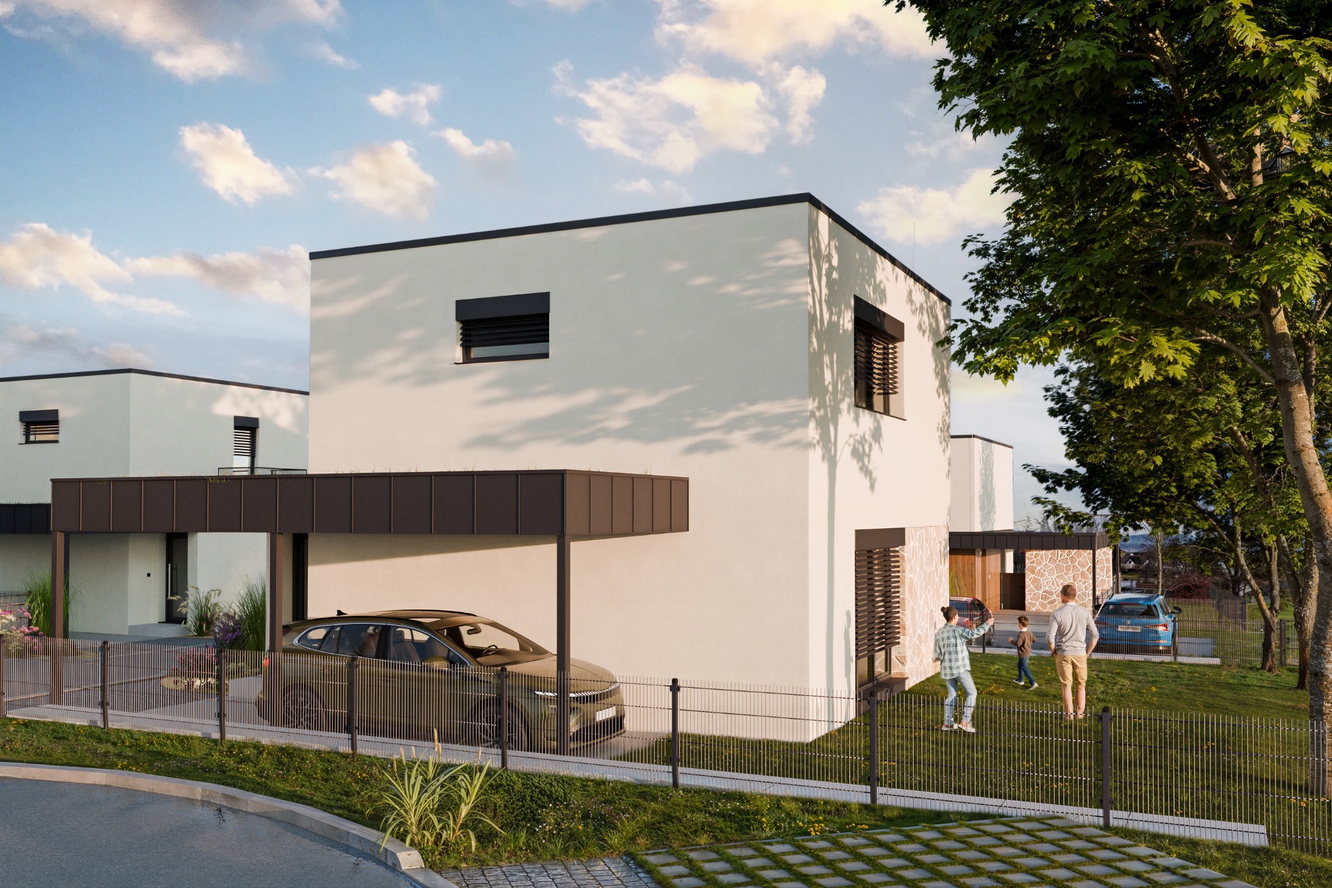 Cílem bylo zprostředkovat budoucím majitelům pocit skutečného domova – ještě dřív, než se začne stavět. V našich renderech jsme propojili architekturu s emotivní atmosférou, pečlivě jsme ladili světlo, materiály i kompozici tak, aby vynikla čistota návrhu a klidný charakter lokality. Výsledná prezentace působí živě, autenticky a pomáhá developerovi představit projekt v nejlepším světle – doslova.