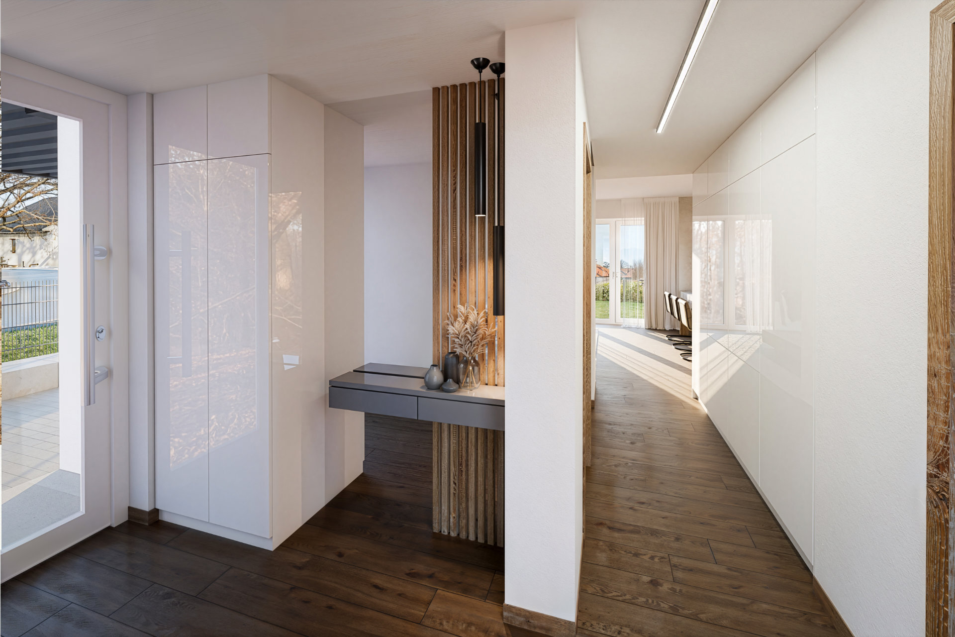 Pro výstavbu sedmi moderních rodinných domů v obci Hůry u Českých Budějovic jsme zajišťovali kompletní vizuální prezentaci projektu. Naším úkolem bylo vytvořit realistické exteriérové i interiérové vizualizace, které věrně zachycují architektonické řešení, atmosféru lokality i důraz na kvalitní detaily.